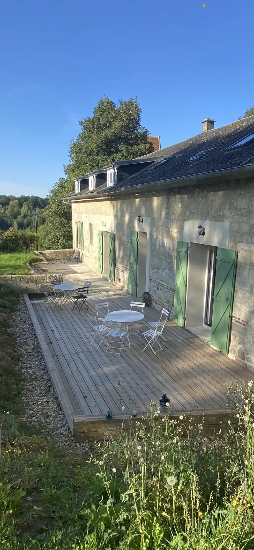Vous pourrez profiter du jardin et de la terrasse tout en bois pour vous détendre ou partager des repas.
